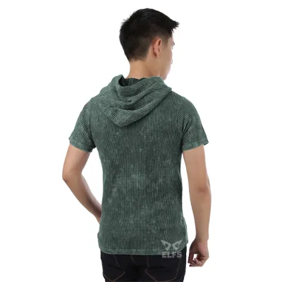 Kaos Hoodie Pria Wafer Wash Hijau Tua