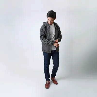 Jaket Parasut Hoodie Pria Windbreaker Training Half Orange