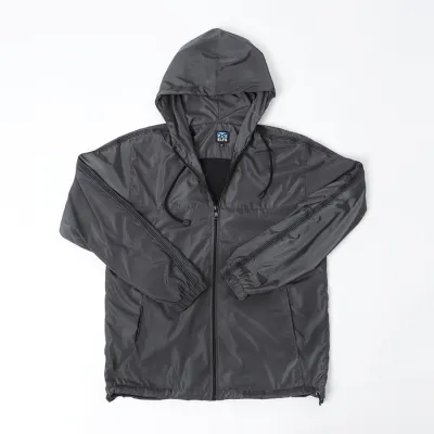 Jaket Hoodie Parasut Wind breaker light weight dengan desain trendy list putih disepanjang lengan, cocok untuk pemakaian casual ataupun untuk training
