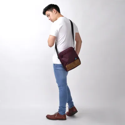 Elfs Tas Selempang Kecil Cordura Suede Sling Bag Marun