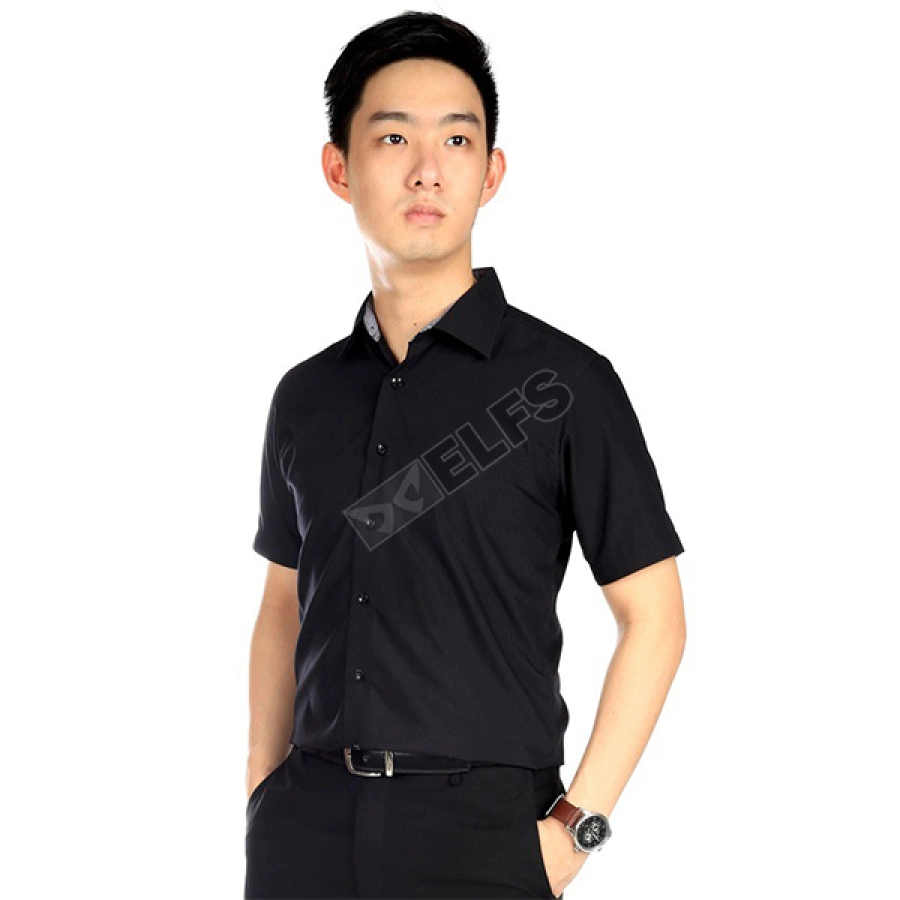 Kemeja Pendek Pria Reversible Cuff Hitam