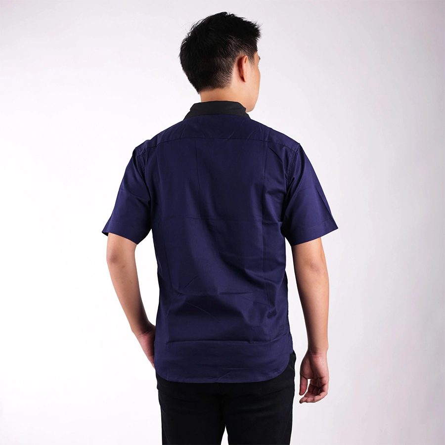 Kemeja Pendek Pria Twill Kerah 2in1 Biru Dongker