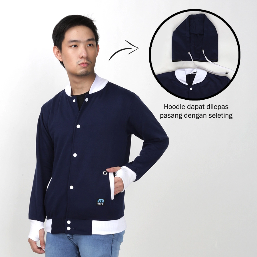 Elfs - Vanko 2in1 Varsity Hoodie Fleece Jacket Biru Dongker