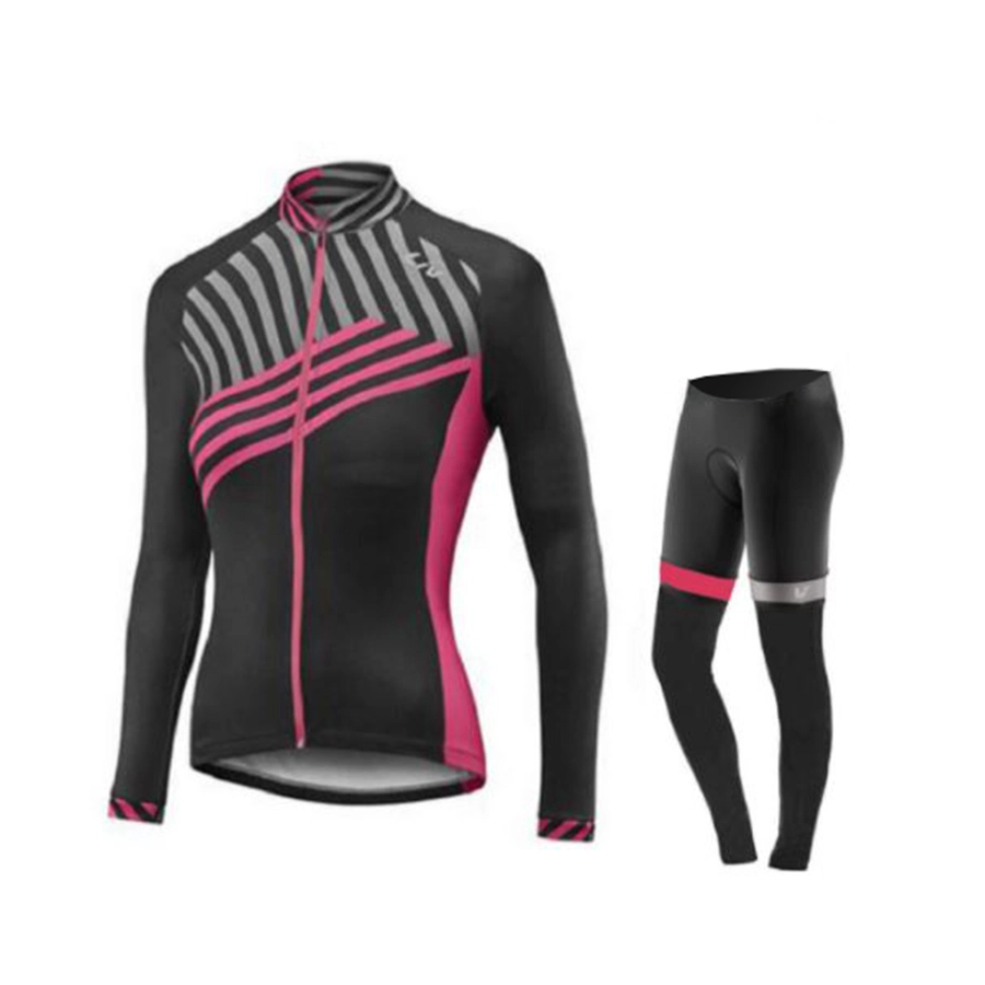 Setelan Jersey Sepeda Wanita LIV Lengan Panjang + Celana Padding MTB Roadbike 02 Hitam